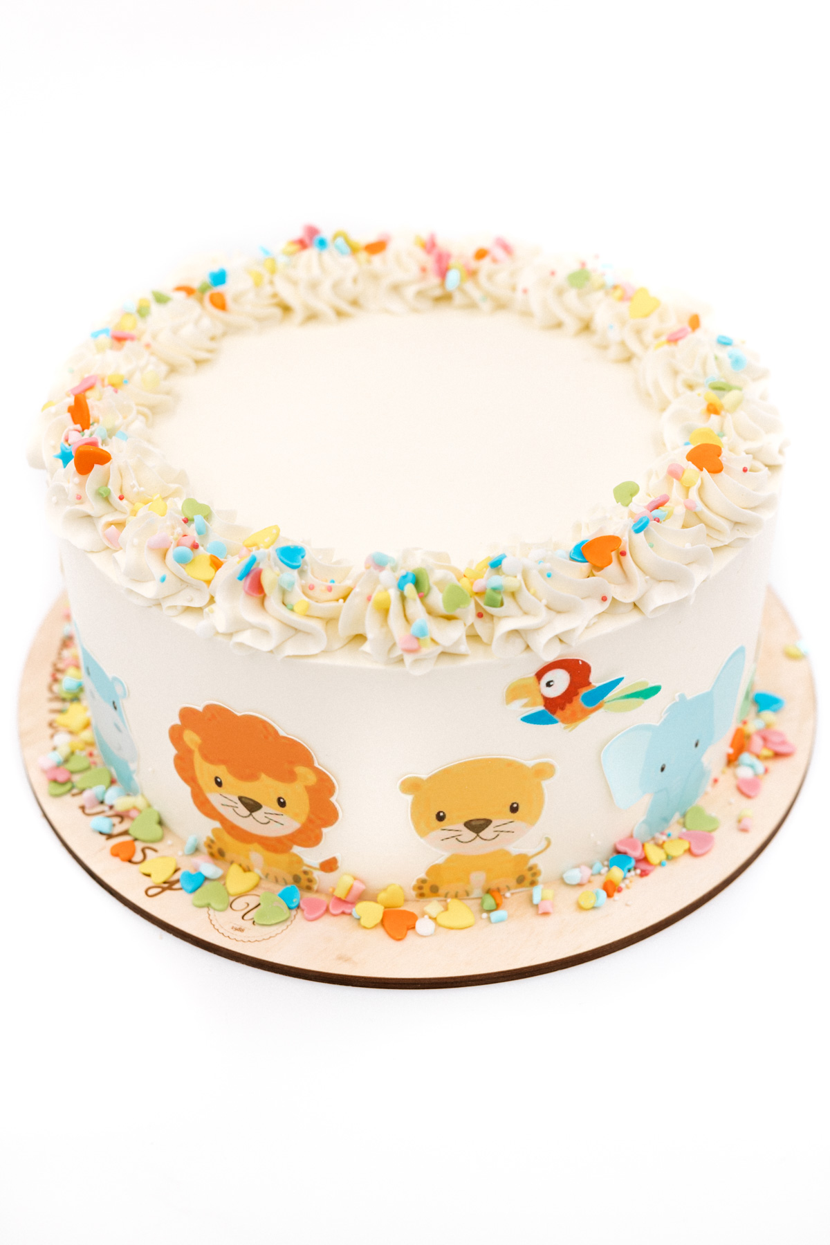 Każde dziecko kocha zwierzęta, więc jeśli nie masz pomysłu na tort na roczek lub kolejne urodziny dla synka – ten na pewno go ucieszy. Kolorowe wizerunki zwierzątek i równie barwna posypka wprowadzają w klimat wesołego zoo, który może stać się tematem przewodnim Twojego przyjęcia. Możliwość wyboru smaku sprawia dodatkowo, że nie tylko wyglądem, ale i wspaniałym smakiem tort potrafi zachwycić solenizanta i wszystkich gości.