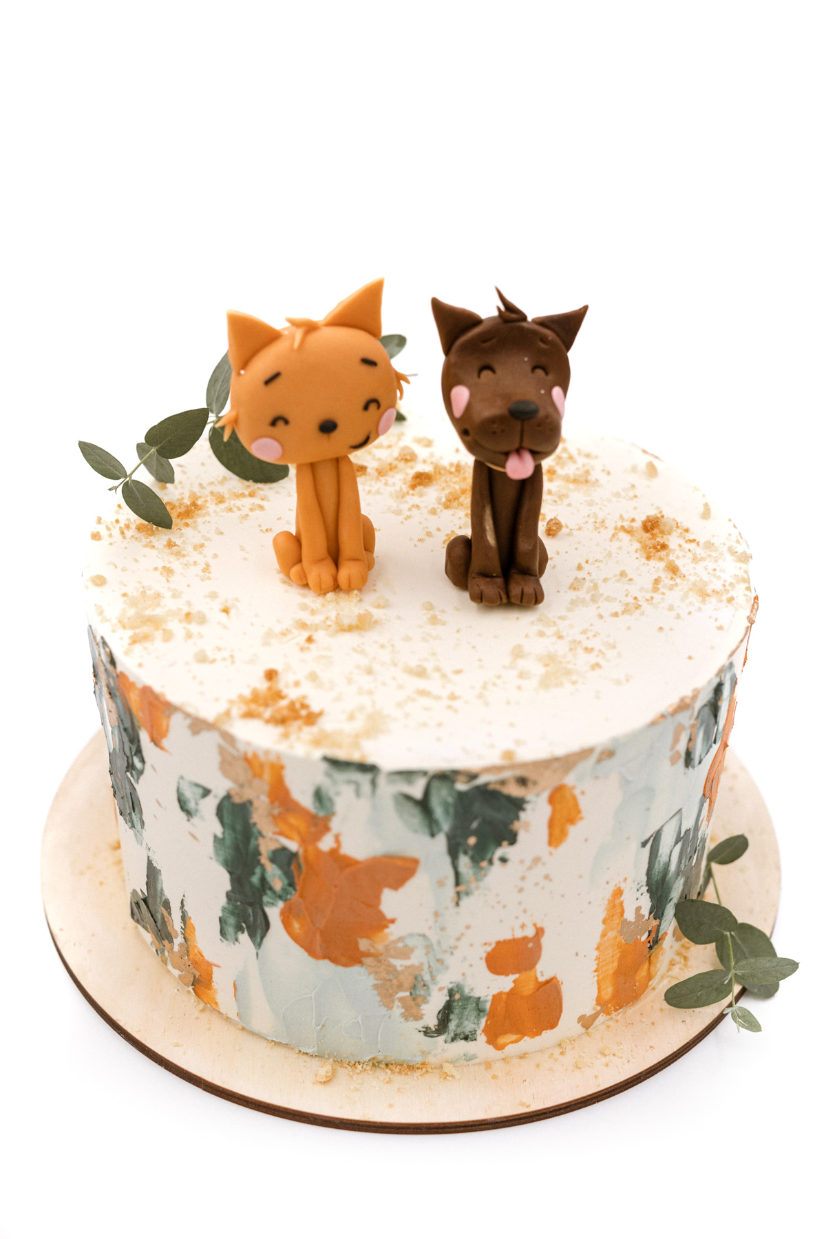 Tort FRIENDS zaprojektowaliśmy z myślą o chłopcach, choć tak naprawdę jest to motyw uniwersalny. Figurki przedstawiające psa i kota oddają charakter motywu przyjaciół. Ich uśmiechnięte pyszczki przypadną do gustu zarówno dzieciom, jak i dorosłym. Naturalna, stonowana kolorystyka tortu FRIENDS dodaje mu elegancji i wpisuje się w popularny styl Boho, który od niedawna przewodniczy wielu przyjęciom.