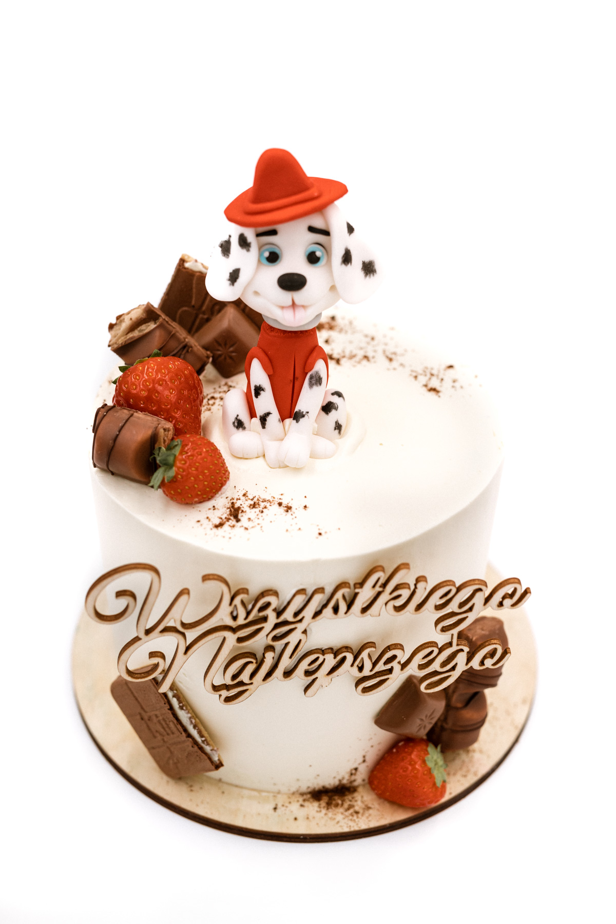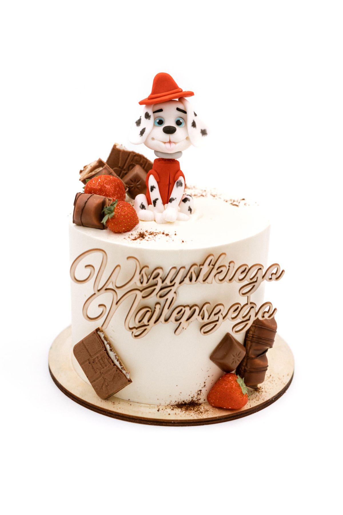 Tort MARSHALL dla wszystkich, którzy kochają Psi Patrol. Starannie wykonana figurka z masy cukrowej przedstawiająca pieska Marshall zadowoli wszystkich miłośników bajek. Intensywne kolory od razu wprowadzą malucha w pozytywny nastrój, a wyśmienity smak tylko dodatkowo udowodni, że to był dobry wybór. Istnieje możliwość wyposażenia tortu w Topper z wybranym napisem, co czyni go jeszcze piękniejszym!